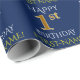 Blue, Faux Gold "HAPPY 1st BIRTHDAY" Wrapping Paper