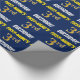 This wrapping paper design features a message like "FIRST-NAME’S 3rd BIRTHDAY!", with the "3rd" having a faux/imitation gold-like color appearance, and with the name and "BIRTHDAY" in a fun, bold font. The name is customizable, and the background is colored blue. Wrapping paper like this could perhaps be used when wrapping birthday gifts being given to somebody in celebration of their third birthday. [~Z0000209]