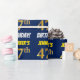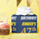 This wrapping paper design features a message like "JENNIFER’S 47th BIRTHDAY!", with the "47th" having a faux/imitation gold-like color appearance, and with the name and "BIRTHDAY" in a fun, bold font. The name is customizable, and the background is colored blue. Wrapping paper like this could perhaps be used when wrapping birthday gifts being given to somebody in celebration of their forty seventh birthday. [~Z0000209]