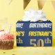 This wrapping paper design features a message like "FIRSTNAME’S 50th BIRTHDAY!", with the "50th" having a faux/imitation gold-like color appearance, and with the name and "BIRTHDAY" in a fun, bold font. The name can be personalized, and the background is colored blue. Wrapping paper like this could perhaps be used when wrapping birthday gifts being given to somebody in celebration of their fiftieth birthday. [~Z0000209]