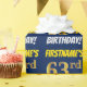 This wrapping paper design features a message like "FIRSTNAME’S 63rd BIRTHDAY!", with the "63rd" having a faux/imitation gold-like color appearance, and with the name and "BIRTHDAY" in a fun, bold font. The name can be personalized, and the background is colored blue. Wrapping paper like this could perhaps be used when wrapping birthday gifts being given to somebody in celebration of their sixty third birthday. [~Z0000209]