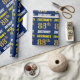 This wrapping paper design features a message like "FIRSTNAME’S 88th BIRTHDAY!", with the "88th" having a faux/imitation gold-like color appearance, and with the name and "BIRTHDAY" in a fun, bold font. The name is customizable, and the background is colored blue. Wrapping paper like this could perhaps be used when wrapping birthday gifts being given to somebody in celebration of their eighty eighth birthday. [~Z0000209]