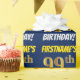 This wrapping paper design features a message like "FIRSTNAME’S 99th BIRTHDAY!", with the "99th" having a faux/imitation gold-like color appearance, and with the name and "BIRTHDAY" in a fun, bold font. The name can be customized, and the background is colored blue. Wrapping paper like this could perhaps be used when wrapping birthday gifts being given to somebody in celebration of their ninety ninth birthday. [~Z0000209]