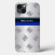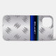 This distinguished blue and silver gray FAUX diamond plate pattern Case-Mate Barely There iPad mini Retina case has a blue band with template text for you to add your monogram, initials, name or other text to. If you need assistance, email niteowlstudio@gmail.com.
