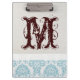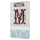 Blue Filigree Damask White Grey Swirly Design Paper Texture Paper-Texture Monogram Initial Clip Board Personalized