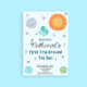 This First Trip Around The Sun invitation in a blue variation is a cute addition to the sun, stars, and planets theme for a baby boy's 1st birthday. It coordinates with the other galaxy party decor, check out the full collection. This design features a hand-painted sun, stars, and watercolor planets on the front and reverse side.