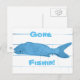blue fish gone fishin logo postcard