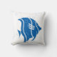 part of the ocean themed kid's pillow decor blue fish on white PILLOW on one side and blue and white strip on back.