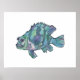 Decorate your kids room with this cartoon fish sparkly blue grouper. Makes a fun colorful display as a fish poster or framed wall art. She's (or is she a he?) a funny fish, but also with an attitude.