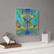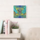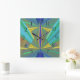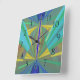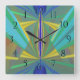 These dramatic clocks add a touch of flair to your decor. This one is a stunning abstract in geometrics. Blues and yellow. Counter clockwise numbers for people who are always short on time - or just for people who like to be a bit different! Everybody could use a little more time.