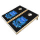 Natural Wood Cornhole Set, Royal Blue and Yellow bags