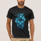 The skull is engulfed in blue flames. Great conversation piece. Different color backgrounds will change the effect of this design, so have fun trying out the different color shirts available to see what you come up with.