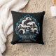 Blue Flaming Spade with Skulls Throw Pillow