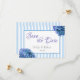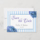 Blue Floral and Stripe Save the Date Card