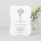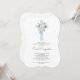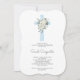 Blue floral Baptism boy invitation