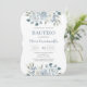 Having your Blue Floral Baptism Spanish Invitation match the theme of your party is a great detail that your guests will appreciate. The thoughtfulness of a consistent party theme is often appreciated and can show your guests that you can host a cohesive event.