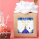 This elegant and glamorous birthday party thank you sticker features a beautiful princess with blonde hair and fair skin in a royal blue ball gown. The text combines handwritten script and modern sans serif fonts for a classy and sophisticated look. The floral arrangements, butterflies and gold confetti create the perfect blend of rustic and chic.