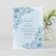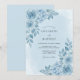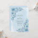 A delicate watercolor design features soft blue roses and hydrangeas with trailing leaves. The airy, romantic composition evokes a gentle, ethereal mood. This elegant artwork is perfect for a dreamy, sophisticated matrimonial event.