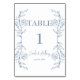 Blue Floral Boho Side Border Wedding Table Number