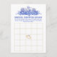This game is sure to be a hit at your shower. Guests write in items they think you will receive and cross them out while you open your gifts. The design features a blue and white floral bouquet with a tea set on the top edge. The free square has a wedding ring.