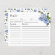Blue Floral Bridal Shower Recipe Card