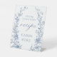 Blue Floral Bridal Shower Recipe Cards Pedestal Sign
