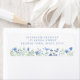 This floral bridal shower return address label is decorated with blue watercolor wildflowers and stylish typography.