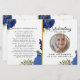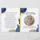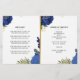 Customize this modern, elegant funeral program with your own photo and text to create a special tribute to your Beloved. An 'In Loving Memory' program featuring Blue Floral botanical and gold accent memorial program. On the front cover is a photo of your loved one, their name, dates, the memorial venue, and the date of the event. On the inside is an obituary and order of service, and on the back is a thank you note and the venue of the