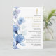 Blue Floral Christian Memorial Funeral Photo Invitation