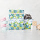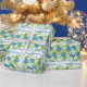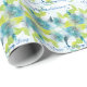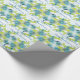Wrapping paper shown with a Blue & Spring Green multicolor print over White background. Text in coordinating color reads "congratulations on your wedding day". Created on glossy paper, but you can select paper choice. Customize this item or buy as is. See coordinating paper plates & napkins, and invitation too.