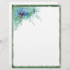 Pretty letterhead with blue and green floral design and green frame. Easy to customize and available in your choice of paper finishes.