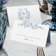Blue Floral Crest Monogram Elegant Wedding Place Card