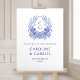 Blue Floral Crest Monogram Wedding Welcome Foam Board
