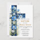 Blue Floral Cross Baptism Invitation
