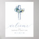 Blue Floral Cross Modern Script Welcome Poster