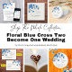 A simple boho floral elegance with this KJV Bible Scripture Verse: Two Shall Become One. Featuring a blue and white floral border and cross. Personalize these Christian Marriage, Engagement, Save-The-Date cards using the design tool to make the necessary changes to the text, font, and colors. Black script hand lettering.