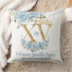 Personalize this elegant baby blue roses floral Quinceañera Sweet 15 birthday picture throw pillow with your own wording and photograph easily and quickly. Simply click the Edit Using Design Tools button to further edit the text, wording, font style, font size, font color, add more text, move or remove some images. Featuring a beautiful baby blue roses floral arrangement and a gold glitter XV. The back design features a space for your picture and can be personalized with your name. Matching items available in store. (c) Somerset Fine Paperie.