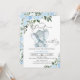 Blue Floral Foliage Elephant Peanut Baby Shower Invitation