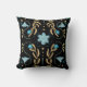 Blue Floral Folk Art Throw Pillow