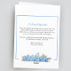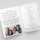 A sweet and elegant folded funeral program adorned with forget-me-not flowers — a symbol of lasting remembrance.
