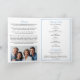 The front features an oval shaped portrait photo, while the inside includes space for the obituary, order of service, and a family photo. The back offers a customizable section for a poem, prayer, or acknowledgment.