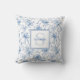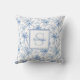 Blue Floral French Toile Monogram Name Throw Pillow