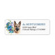 The left side of these return address labels feature a beautiful watercolor image of a German Shepherd Dog next to a bouquet of blue and purple flowers. Your custom text is in blue and black at the right. Perfect for the GSD owner.
