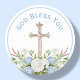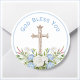 Blue Floral God Bless You Religious Classic Round Sticker