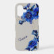 This pretty phone case for her has a subtle gold confetti overlay with a background of vivid blue flower bouquets. Her name is written in matching blue script, and everything is placed on a pale silver gray background. Just enough sparkle, without being glitzy!