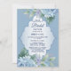 Blue Floral Green Leaves Wedding Bridal Shower Invitation