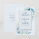 This elegant save the date card features soft watercolor blue flowers and lush green leaves, beautifully arranged around a classic serif frame with refined typography and a clean layout. The muted color palette and warm minimalist tone make it an ideal choice for romantic, formal, or garden-inspired weddings. This neutral save the date blends modern save the date trends, script typography, and blue floral watercolor motifs to create a timeless garden party feel for your celebration.