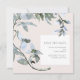 This chic design features a watercolor sprig of blue floral greenery and custom typography.