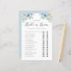 Guess who said it. The bride or groom? Answer these questions to find out! Add this fun and playful botanical shower game card to your event. It features watercolor illustrations of off-white and blue roses and peonies with a greenery accent. Personalize by adding back texts. This floral he said she said game card is perfect for weddings, birthdays, bridal showers and baby showers.