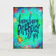 Blue Floral Happy Happy Birthday Fun Colorful Card